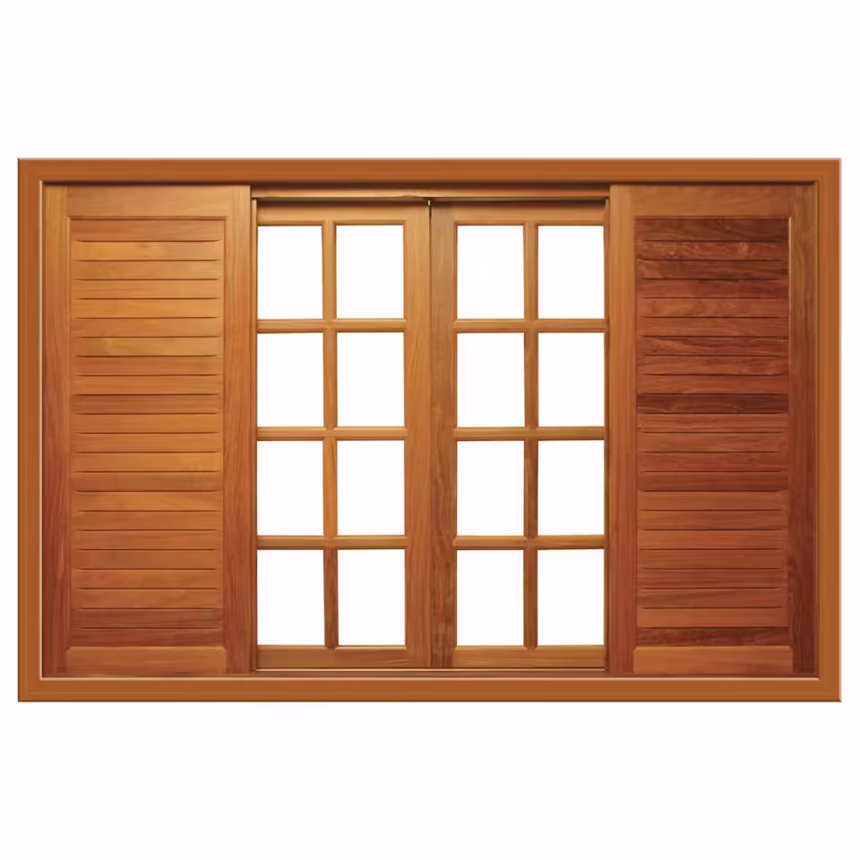 A Janela de Correr 6 Bandeiras 1047 – Reta Veneziana Portuguesa combina laterais em veneziana para ventilação constante com centro quadriculado clássico. Estilo português autêntico em madeira de alta qualidade.
