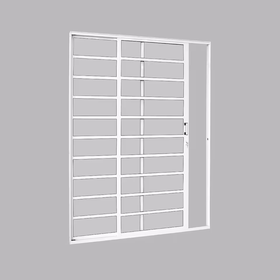 A Porta de Correr Horizontal de 2 Folhas é produzida, garantindo durabilidade contra sol e chuva. Este modelo vem equipado com vidro incolor, proporcionando claridade total ao ambiente. O sistema de trilhos permite uma abertura fácil, ideal para quem busca funcionalidade no dia a dia com estética elegante.