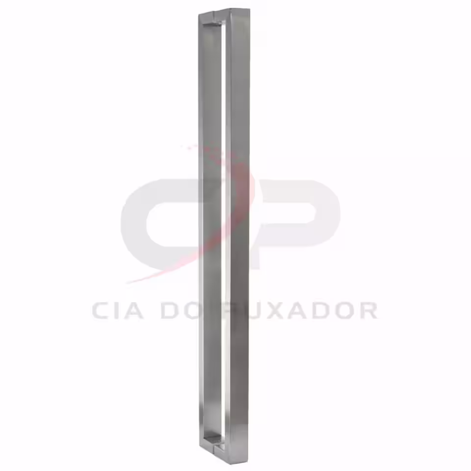 O Puxador em U Escovado 50×20 oferece uma estrutura robusta para portas pesadas. Feito de aço inoxidável escovado, seu formato em U proporciona pegada dupla-face, ideal para portas de correr ou pivotantes em ambientes comerciais, com textura mate para durabilidade.